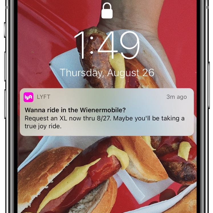 So, the brand made that dream a modern-day reality, partnering with a ride share giant to turn their massive wiener into a fully functioning Lyft. Oscar Mayer completely integrated into the Lyft app experience, then when consumers requested a ride during peak travel season, the Wienermobile rolled up.